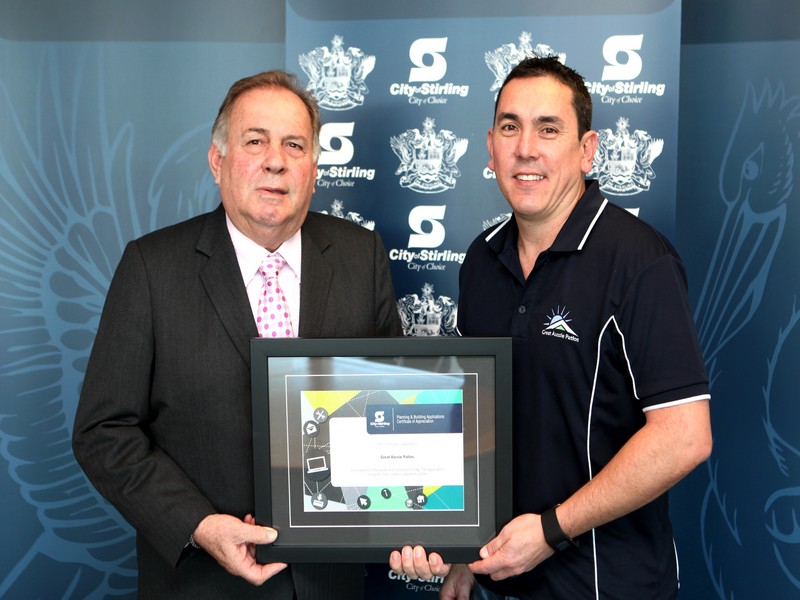 Great Aussie Patio’s was recently awarded a certificate from the City of Stirling for applications made via the cities online services known as elodgement.